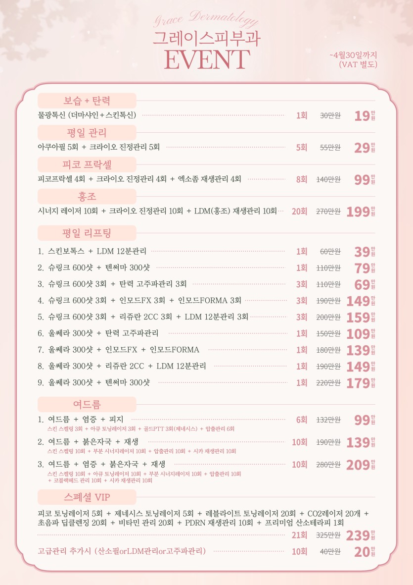 그레이스피부과 2026 3·4월 이벤트 안내입니다.