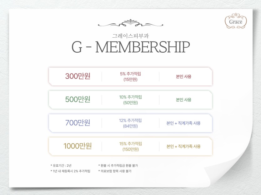 그레이스 피부과 멤버쉽 가격 안내 입니다.